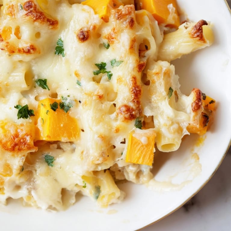 Save This Alfredo Butternut Squash Pasta Bake is the kind of nourishing crowd-pleasing main dish you want for cool evenings or laid-back get-togethers. It is a bubbling cheese-topped pasta casserole packed with roasted butternut squash and drenched in luscious homemade Alfredo sauce. Every forkful delivers creamy richness and cozy comfort making it a favorite for both vegetarians and anyone craving a hearty meal.
