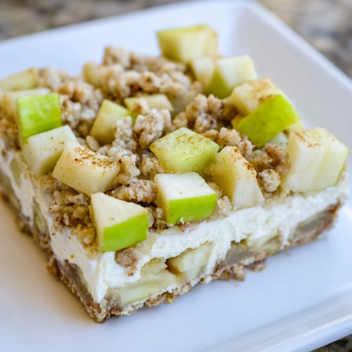 Save Cream cheese, apple, and spiced oat layers combine for a comforting dessert bar with creamy, crunchy, and warmly spiced flavors in every bite.
