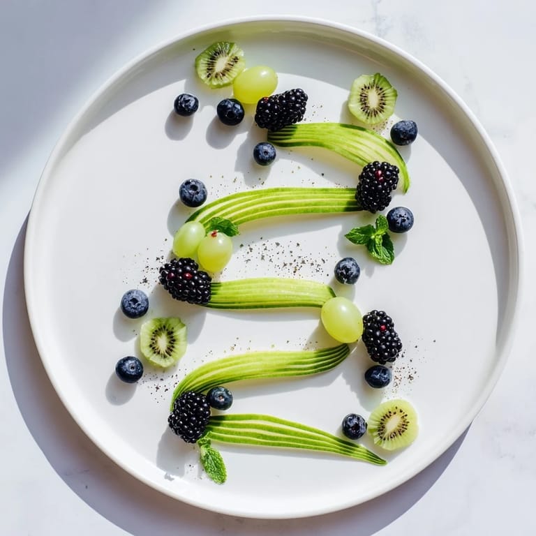 - Now comes the fun part: arrange your blackberries, purple and red grapes, and blueberries in undulating lines right next to and slightly intertwining with the green fruits. The colors should dance together, creating that Northern Lights effect where one hue bleeds into another.