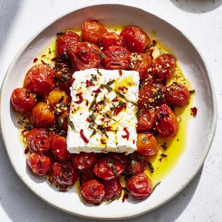Save The first time I made this dish, I wasn't trying to reinvent anything—I was just hungry and had a block of feta sitting in my fridge. It was one of those evenings where the kitchen felt like an experiment. I threw cherry tomatoes in a pan with olive oil and garlic, nestled that feta right in the middle, and something magical happened in the oven. Twenty-five minutes later, the tomatoes had burst into jammy sweetness, the feta had softened into a creamy cloud, and I realized I'd accidentally stumbled onto something worth making again and again.