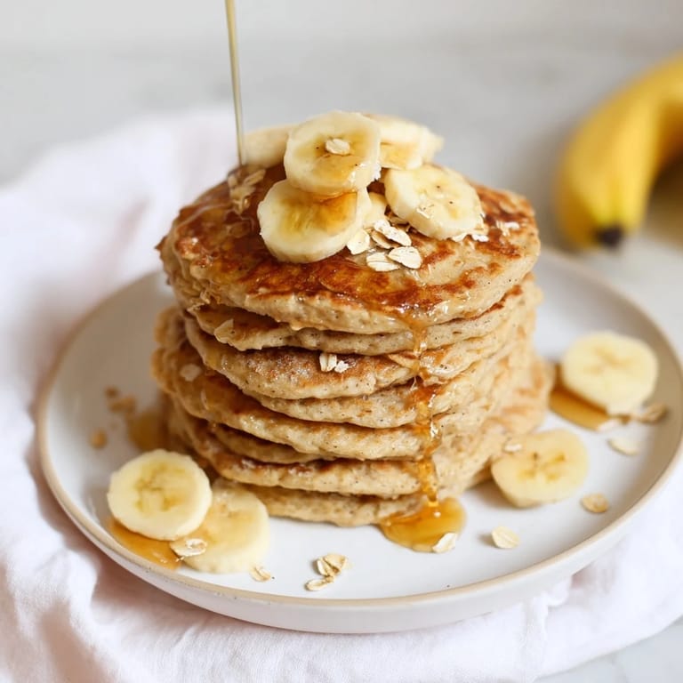 Save Fluffy, golden pancakes made with ripe bananas and wholesome oats—a breakfast that's both easy and comforting. These pancakes feel indulgent but are actually packed with goodness, making them a perfect start to your day.