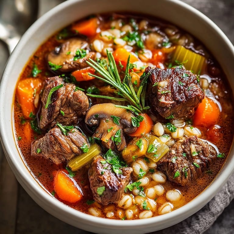 Beef and barley soup has roots in traditional European peasant cooking, where economical cuts of meat were slowly simmered with available grains and vegetables to create nourishing, filling meals. Barley itself has been cultivated for over 10,000 years and was often used to stretch meals during lean times. This recipe honors that practical cooking tradition while updating it with modern conveniences like canned tomatoes and ready made broth.
