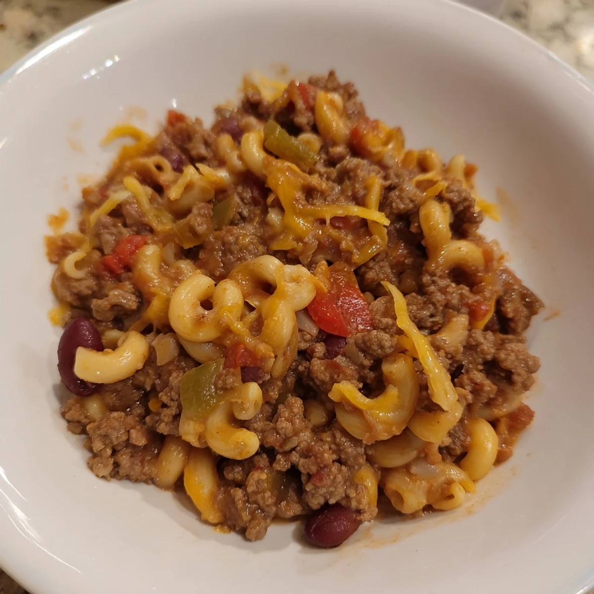 Save A comforting one-pan meal combining the flavors of a cheeseburger and classic chili mac, all topped with melted cheese. Budget-friendly, hearty, and perfect for busy weeknights.