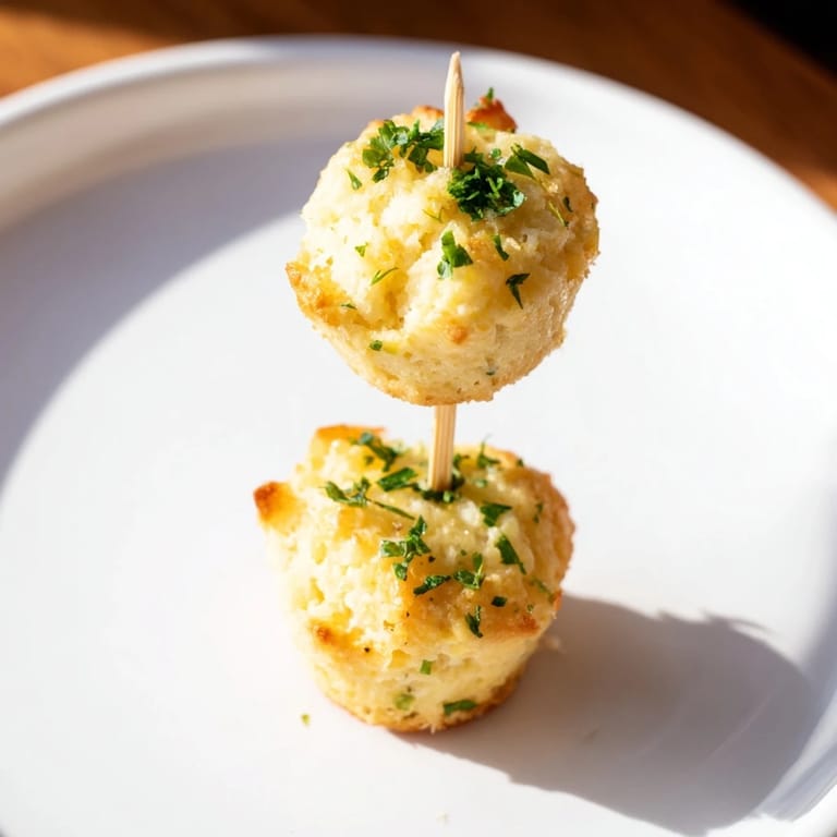 Save A playful, savory-sweet appetizer featuring fluffy cheddar biscuit muffins with a hint of cream soda, served on skewers for a fun party treat.