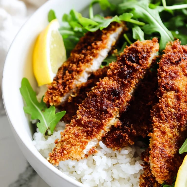 Save There was this Tuesday night when I had leftover rice, a bag of arugula about to wilt, and chicken breasts that needed using. I wasn't in the mood for anything heavy, but I wanted something satisfying. I remembered how much I loved the crunch of katsu but wished it felt a little lighter, a little brighter. That's when I grabbed the Parmesan instead of regular breadcrumbs and decided to skip the heavy sauce entirely. The result was this bowl: crispy, cheesy, fresh, and somehow exactly what I didn't know I was craving.