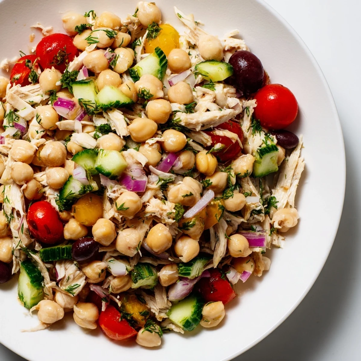 - Red onion (1 small, finely diced): Raw red onion brings a sharp bite that balances the protein-heavy salad.