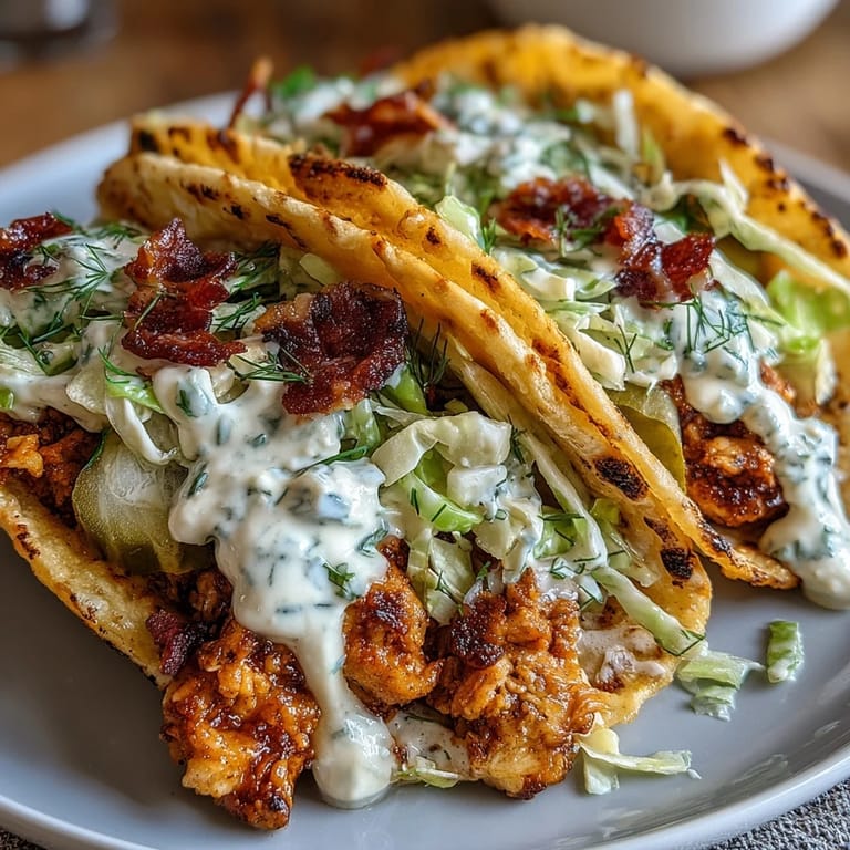 Save My brother called me at work one Tuesday asking if I could make something that felt fancy but didn't require fussy technique—he was bringing his new girlfriend over. I had ground chicken thawing, a jar of dill pickles calling from the fridge, and twenty minutes to prove I could cook something that tasted intentional. These tacos came together like they'd been waiting to exist, all crispy cheese lace and tangy brightness, and watching both of them reach for seconds before asking what was in them became the real satisfaction.