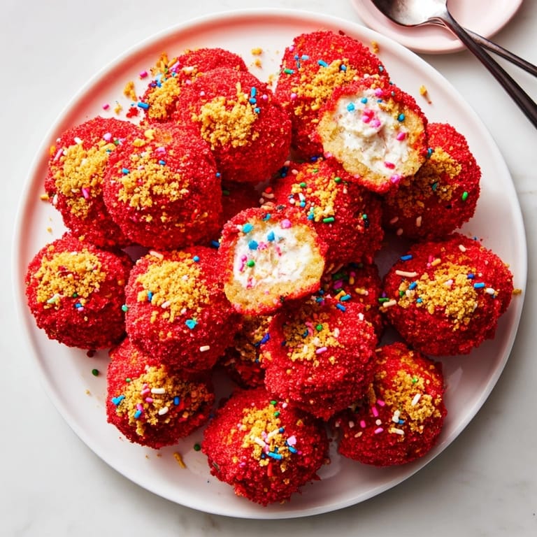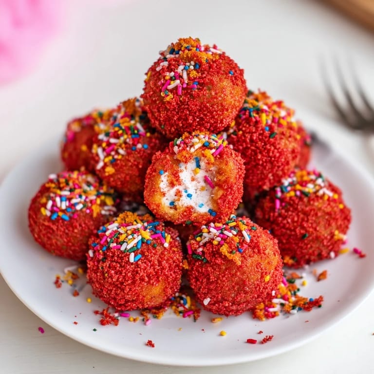 Save Sweet, spicy, and fun, these pancake balls combine the nostalgia of funfetti cake, the heat of Flamin Hot chips, and the fluffiness of pancakes—perfect for adventurous eaters or party treats.