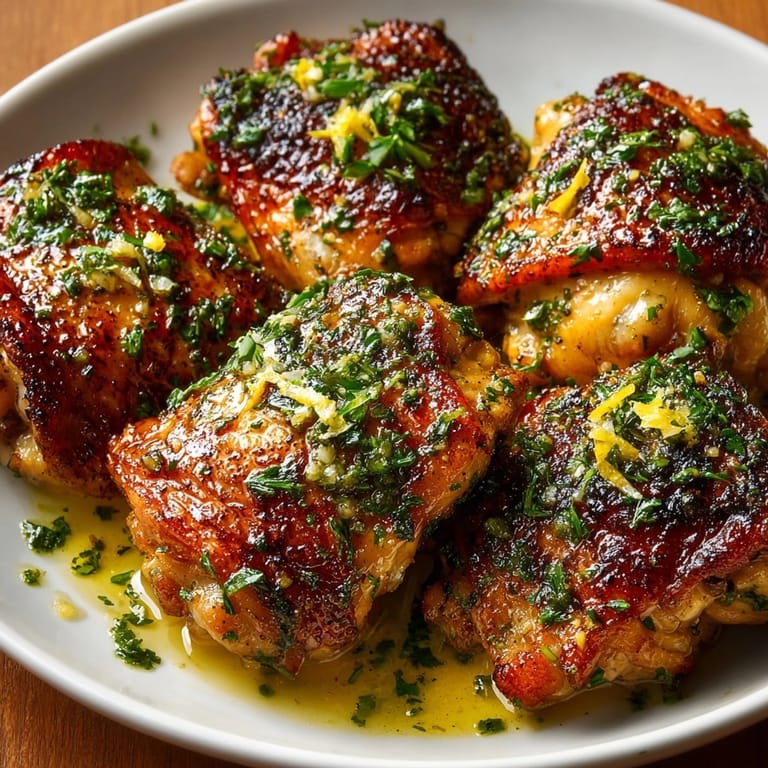 Save Juicy chicken thighs marinated in a bright blend of garlic and fresh herbs have become my weeknight solution when I crave comfort food with very little effort. This dish always manages to impress company but is easy enough for a relaxed dinner at home.