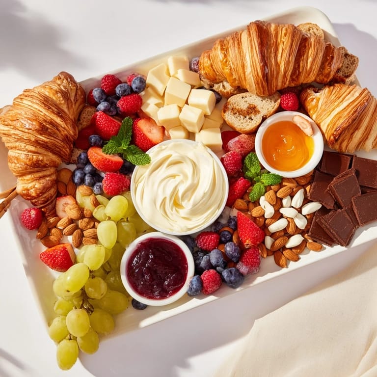 Mini croissants, brioche rolls, and artisan multigrain bread offer a variety of textures and flavors perfect for a balanced board.