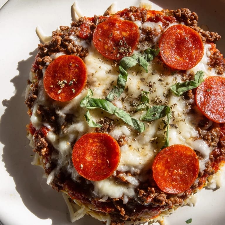 Save There's something almost rebellious about making pizza without a crust, and I discovered this one by accident during a week when we'd run out of flour. My partner was skeptical—skeptical turned to delight after that first bite of crispy beef base with melted cheese and pepperoni. It's become our go-to when we want pizza night without the carb guilt, and honestly, the beef foundation gives this dish a richness you don't get from dough.