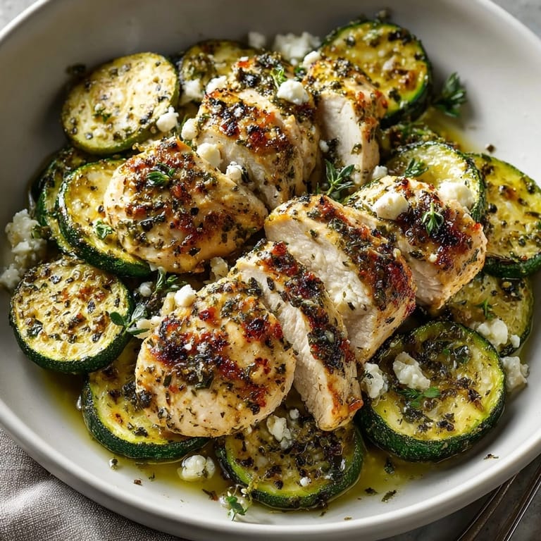 If you are out of zucchini try yellow squash or even eggplant Chicken thighs are tasty if you want a richer dish For herbs rosemary or marjoram work well too For cheese goat cheese crumbles can stand in for feta or parmesan