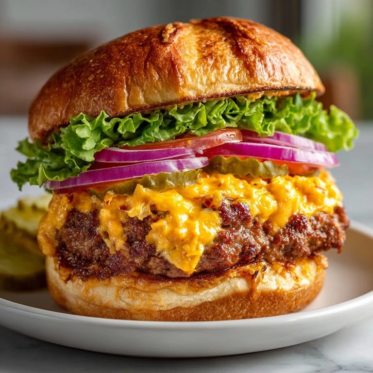 - Layer each bun base with lettuce a thick slice of tomato onion and pickles if desired Set the burger on top and cap with the top bun Serve hot and let everyone experience that gooey cheesy joy