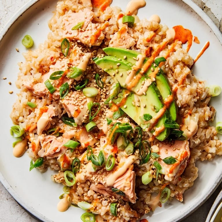 Save I discovered this bowl while scrolling through videos at midnight, my phone glowing in a dark kitchen, and honestly, I almost didn't make it. But there was something about watching that salmon flake onto warm rice, the way the avocado caught the light, that made me stop and think about how food doesn't need to be complicated to feel special. The next afternoon, when I had leftover salmon and rice sitting in my fridge, I remembered that video and decided to try it. Twenty minutes later, I understood why this bowl had taken over the internet—it wasn't just delicious, it was the kind of meal that made me feel like I'd figured something out.
