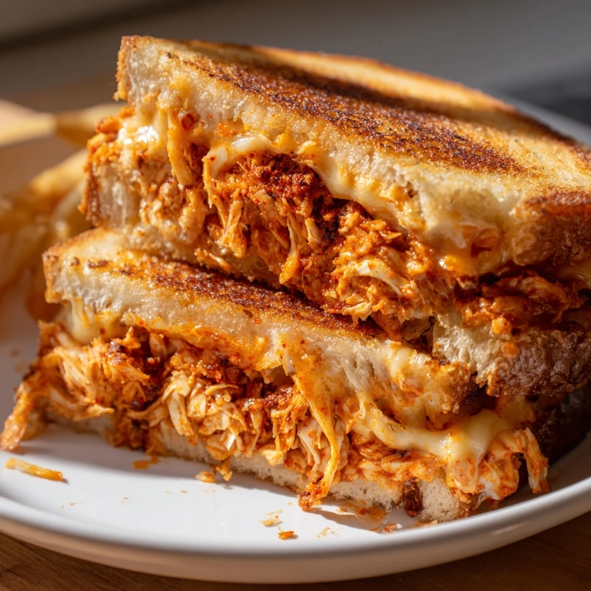 Save There's something about the smell of butter hitting a hot skillet that makes me forget I'm supposed to be cooking something simple. One random Tuesday, I had leftover rotisserie chicken, a wedge of sharp cheddar that was calling my name, and the sudden realization that a grilled cheese didn't have to be boring. I tossed that chicken with hot sauce and spices, mixed in some crispy panko I'd toasted just because, and slapped it all between two slices of thick sourdough. The first bite was chaos in the best way—crispy, gooey, spicy, buttery. It became my go-to when I wanted something that felt fancy but took no time at all.