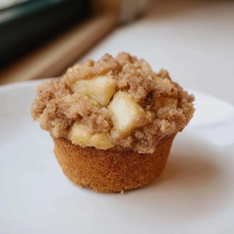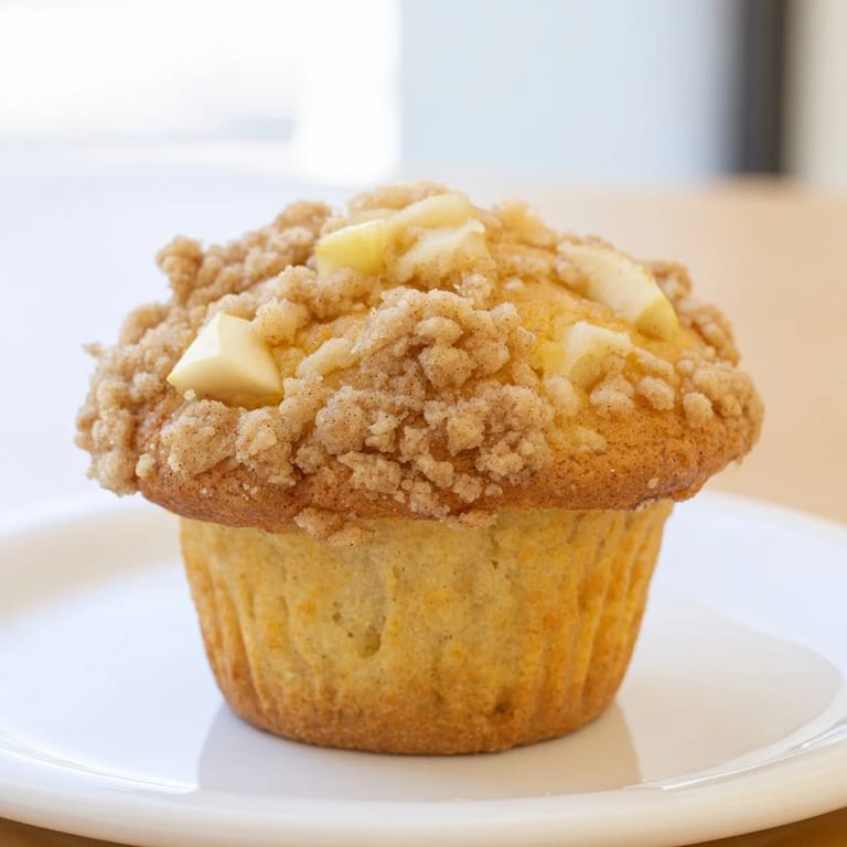 Save Moist, cinnamon-spiced apple muffins topped with a buttery crumb for the perfect breakfast or snack.
