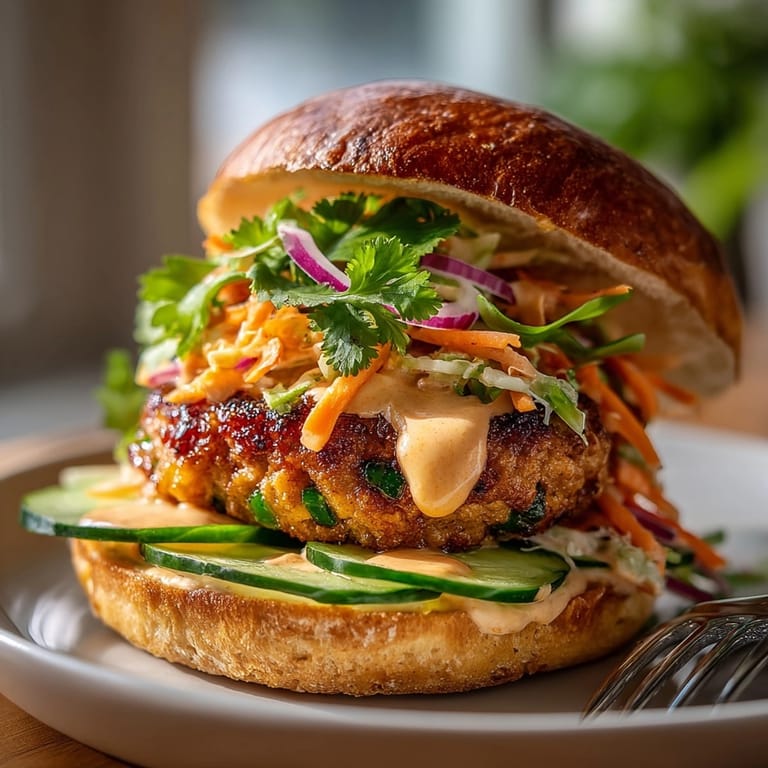 Store leftover patties wrapped in foil or a sealed container in the fridge up to three days Keep peanut sauce in a glass jar for freshness Layer veggies separately so they stay crisp Avoid assembling more than you plan to eat right away air tight storage helps keep buns soft