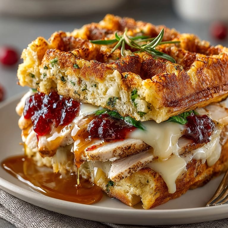 Save Thanksgiving Leftovers Waffle Sandwiches take all the best parts of your holiday feast and turn them into a crispy-griddled brunch treat. Leftover stuffing gets a second life as the crusty base for a stacked sandwich loaded with sliced turkey, tangy cranberry, and a savory pour of gravy. This is my favorite way to make leftovers feel exciting—kids and adults light up when they see these come out of the waffle iron.