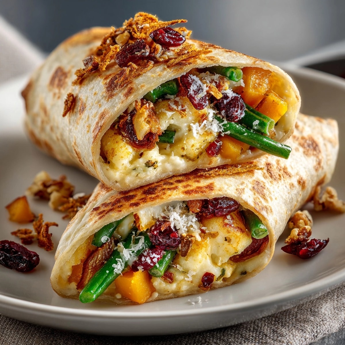 No need to worry if you cannot find all the traditional ingredients. Sweet potatoes make an excellent alternative to butternut squash, providing similar sweetness and texture. Frozen green beans work perfectly when fresh are unavailable just blanch them quickly before chopping. For the nuts, pecans offer a wonderful Southern twist to the recipe. Ricotta salata can replace Parmesan for a milder flavor profile. Even the wraps themselves are flexible spring roll wrappers create a lighter version while puff pastry makes an indulgent variation.