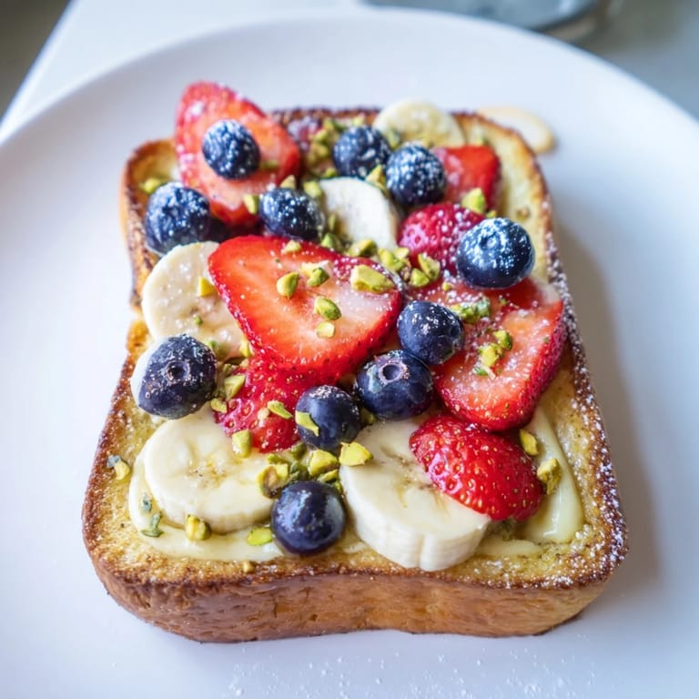 The magic of this toast is how flexible it is with fruit. Raspberries add a tart brightness, fresh peaches bring summer warmth, and sliced kiwi creates a pop of color and zing. Even frozen berries work in a pinch—just thaw them slightly so they're not ice cold against the warm custard. I've also layered thin apple slices and found they add a gentle crunch that's really lovely.