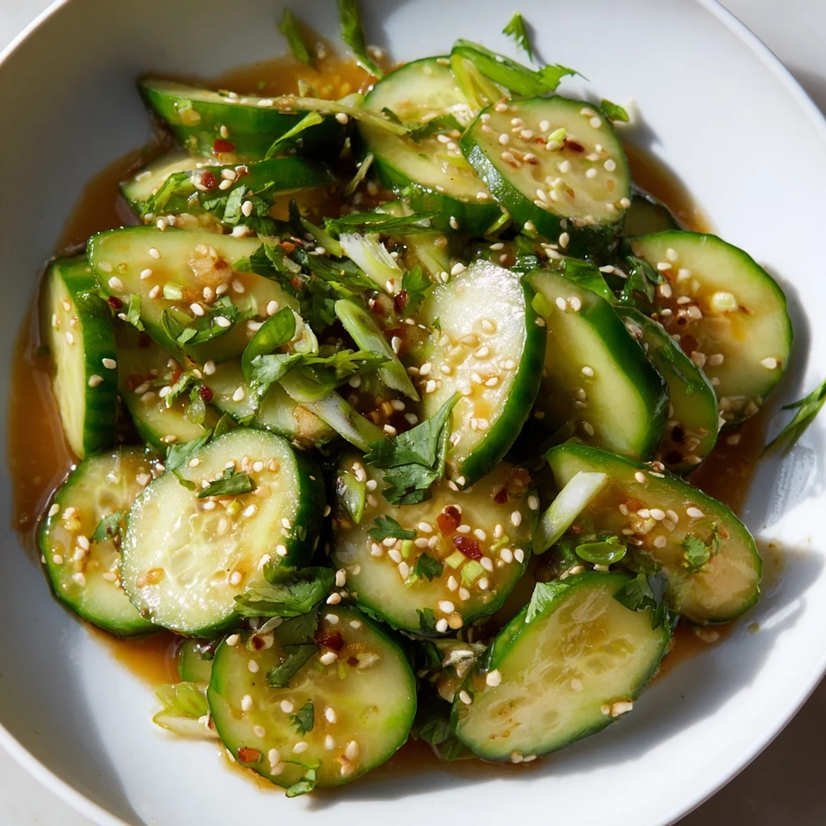 Save I stumbled onto this salad completely by accident on a humid summer afternoon when my fridge was nearly empty except for two massive English cucumbers and a bottle of toasted sesame oil I'd been meaning to use. I whisked together whatever I had on hand—soy sauce, rice vinegar, a bit of ginger—and tossed everything into a bag because I was too lazy to dirty a bowl. The shake method worked so well that it became my go-to move, and now this is what I make whenever I need something crisp, tangy, and ready in minutes.