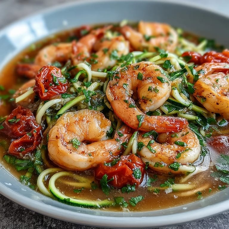 Save There's something about cooking shrimp that makes me feel like I'm actually pulling off something fancy, even when it takes barely fifteen minutes from pan to plate. My neighbor stopped by one Tuesday evening just as I was spiralizing zucchini, and within minutes the smell of garlic and lemon had her asking for the recipe before she even tasted it. That's when I realized this bowl wasn't just quick—it was the kind of meal that makes you look like you tried, without the fuss.