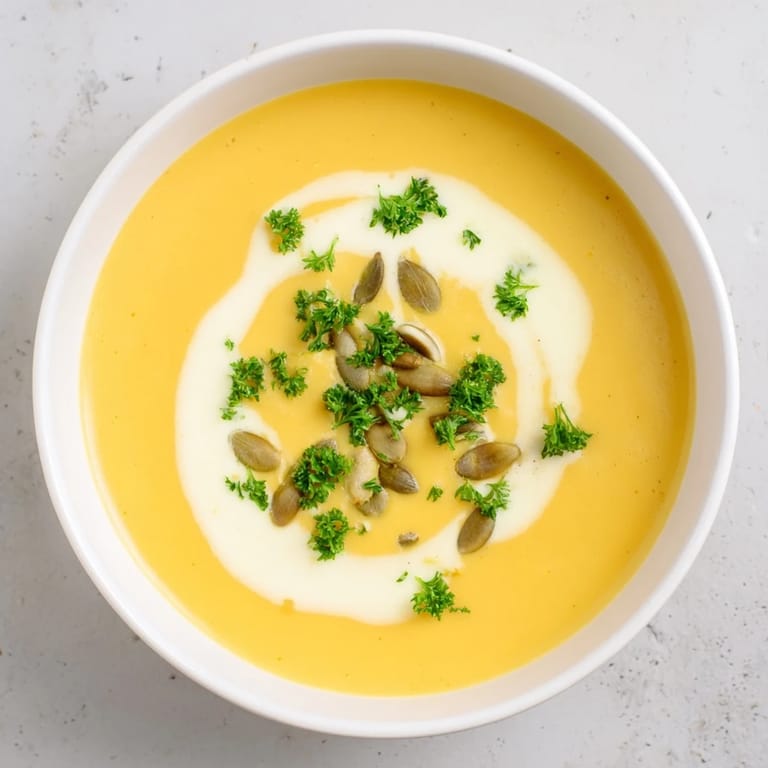Save A velvety, gently spiced soup blending the natural sweetness of butternut squash and ripe pears—perfect for chilly days and festive gatherings.