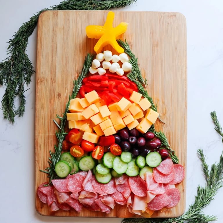 Save A festive and colorful appetizer platter, artfully arranged in the shape of a Christmas tree with an array of cheeses, cured meats, fruits, and crackers. Perfect for holiday gatherings and easy entertaining.
