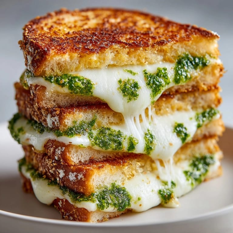 Save Grilled cheese with pesto and mozzarella is my answer for those days when I want something quick yet special for lunch. The crisped bread, gooey cheese, and bright basil pesto hit every craving whether you are eating at your kitchen counter or packing a satisfying meal for work. This combination elevates a childhood classic but does not require any extra effort or hard-to-find ingredients.