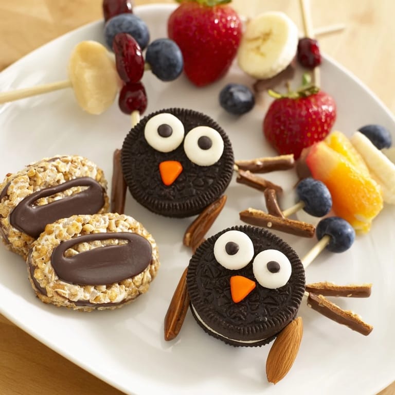 Save A whimsical, family-friendly treat tray featuring adorable owl-shaped snacks and sweets—perfect for parties, kids gatherings, or fun dessert tables.