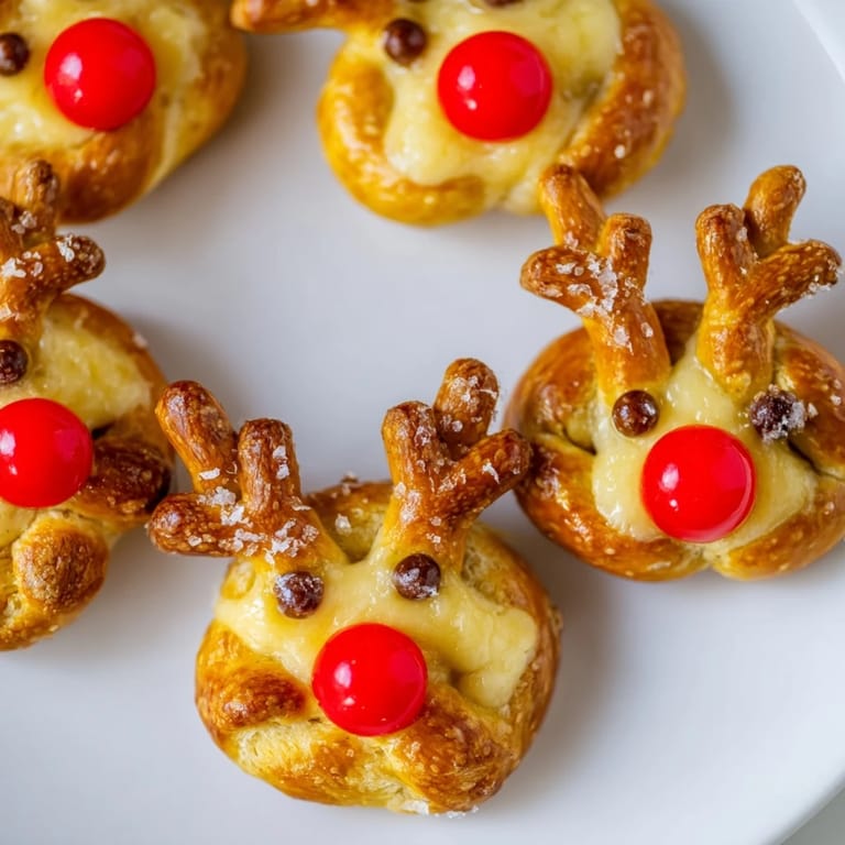 Save Fun, festive pretzel bites filled with creamy cheese and topped with a bright cherry red noseβthe perfect savory snack for holiday gatherings.